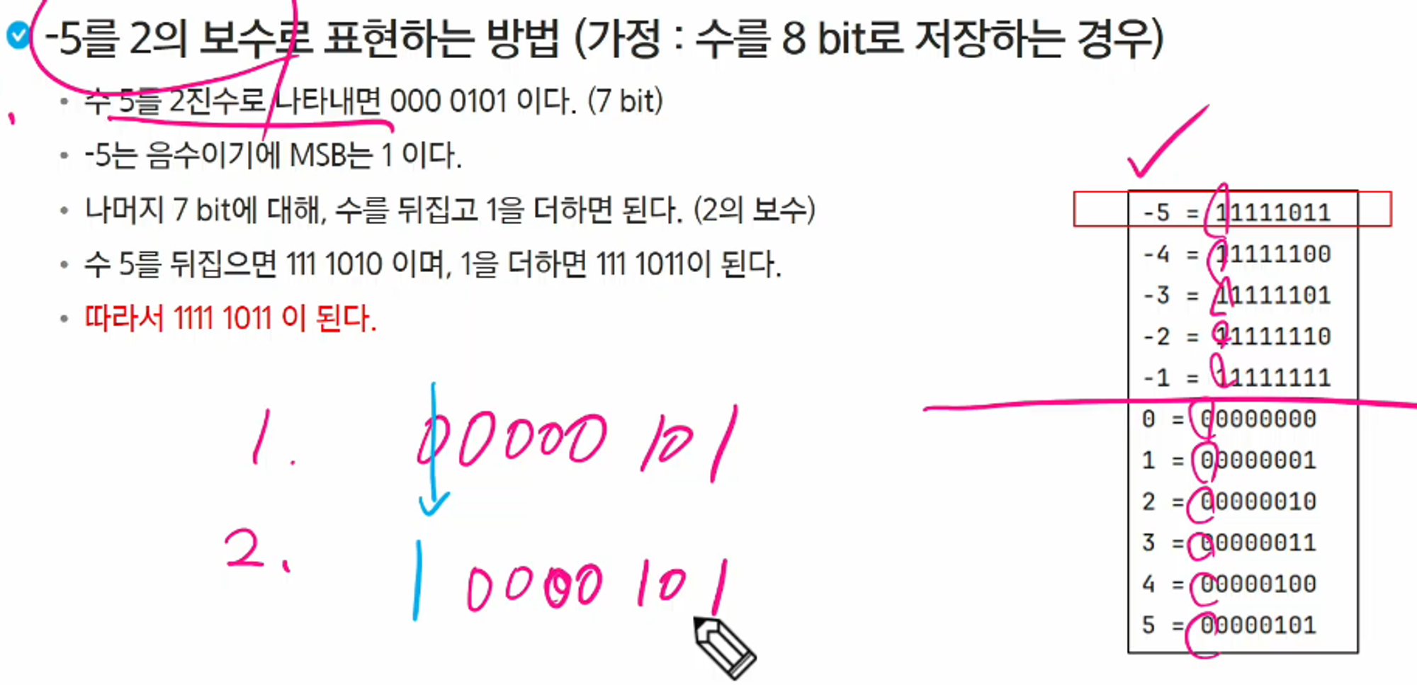 컴퓨터는 음수를 ‘2의 보수’로 관리한다.