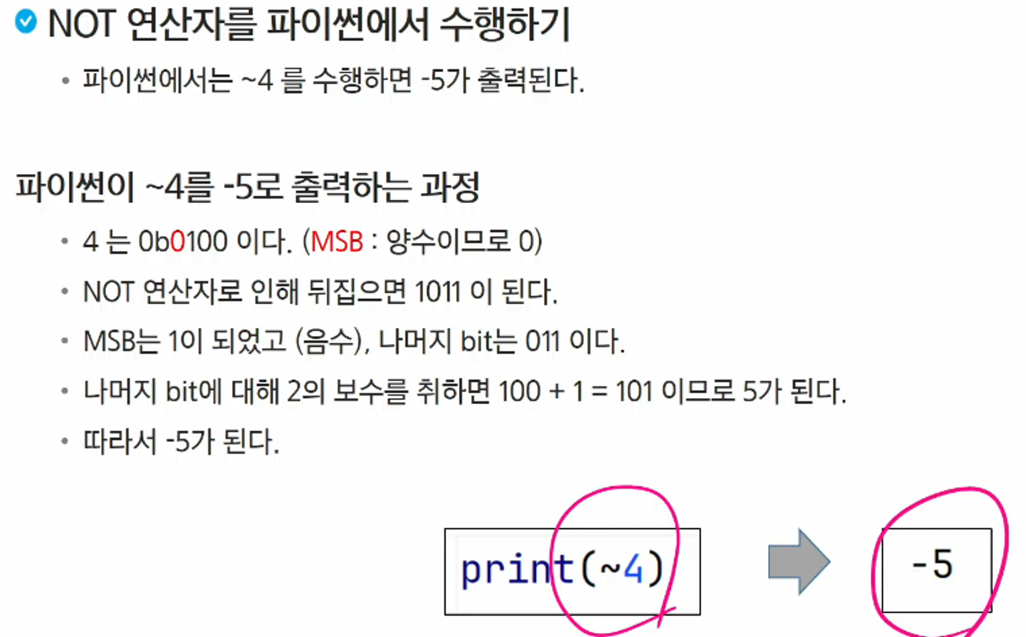 101 = 5 니까 - 5 가 된다.