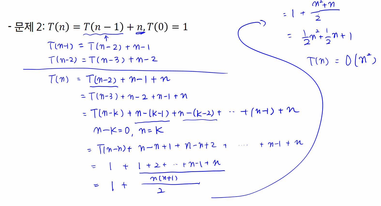 문제 1 : T(n) = T(n-1) + 1 , T(0) = 1