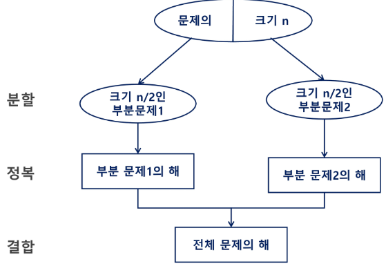 - 정복(Conquer) : 나눈 작은 문제를 각각 해결한다