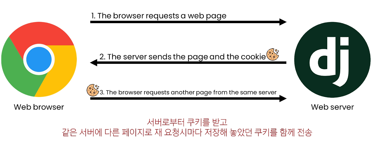 - ⇒ Django는 우리가 session 메커니즘 ( 복잡한 동작원리)에 대부분을 생각하지 않게끔 많은 도움을 줌