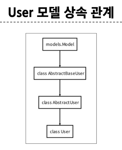- 우리는 지금까지 별도의 User 클래스 정의 없이 내장된 auth 앱에 작성된 user 클래스를 사용했음