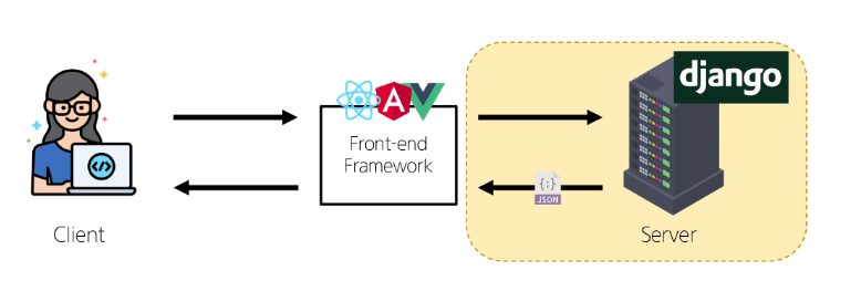 - 지금까지 Django 서버는 사용자에게 페이지(html)만 응답하고 있었음