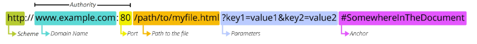 - 기본적으로 웹은 http(s)를 요구하며 메일을 열기위한 mailto:, 파일을 전송하기 위한 ftp:등 다른 프로토콜도 존재