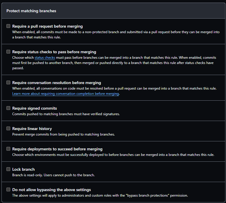 Settings - Branches - Add rule 또는 기존 룰 선택